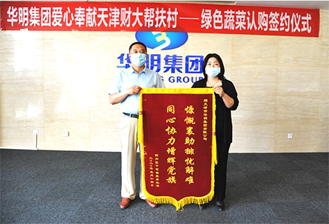 隨后,雙方負責人簽訂了蔬菜產(chǎn)業(yè)戰(zhàn)略合作協(xié)議后,沽東村書記為表示感謝,為華明集團送上“慷慨襄助排憂解難,同心協(xié)力增輝黨旗”的錦旗。天津財大幫扶負責人也表示,希望以后可以和華明集團長期合作發(fā)展。這次認購儀式不僅是對農(nóng)業(yè)產(chǎn)業(yè)高效發(fā)展的幫扶,也是對鄉(xiāng)村產(chǎn)業(yè)振興的推動。華明集團此次義舉更是大力弘揚了集團堅持“致富思源、富而思進”的宗旨,幾十年如一日,以慈善事業(yè)為已任,傾情回報社會的無私奉獻精神。