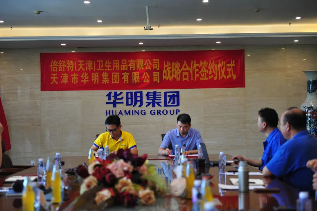 2023年6月26日,天津包裝行業(yè)領軍企業(yè)天津市華明集團有限公司與健康護理產(chǎn)品的創(chuàng)造者和健康護理文化的傳播者的倍舒特(天津)衛(wèi)生用品有限公司舉行了戰(zhàn)略合作簽約儀式,攜手共進,強強聯(lián)合,共享發(fā)展!