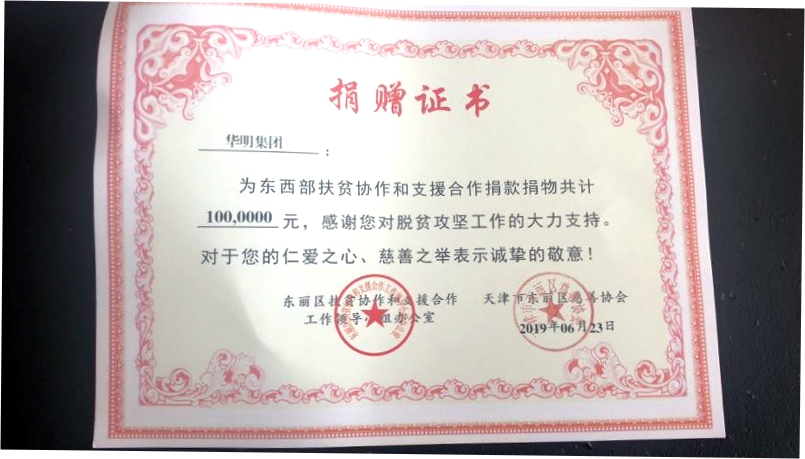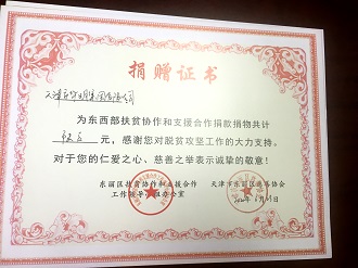 東西部扶貧捐贈(zèng)證書(shū)