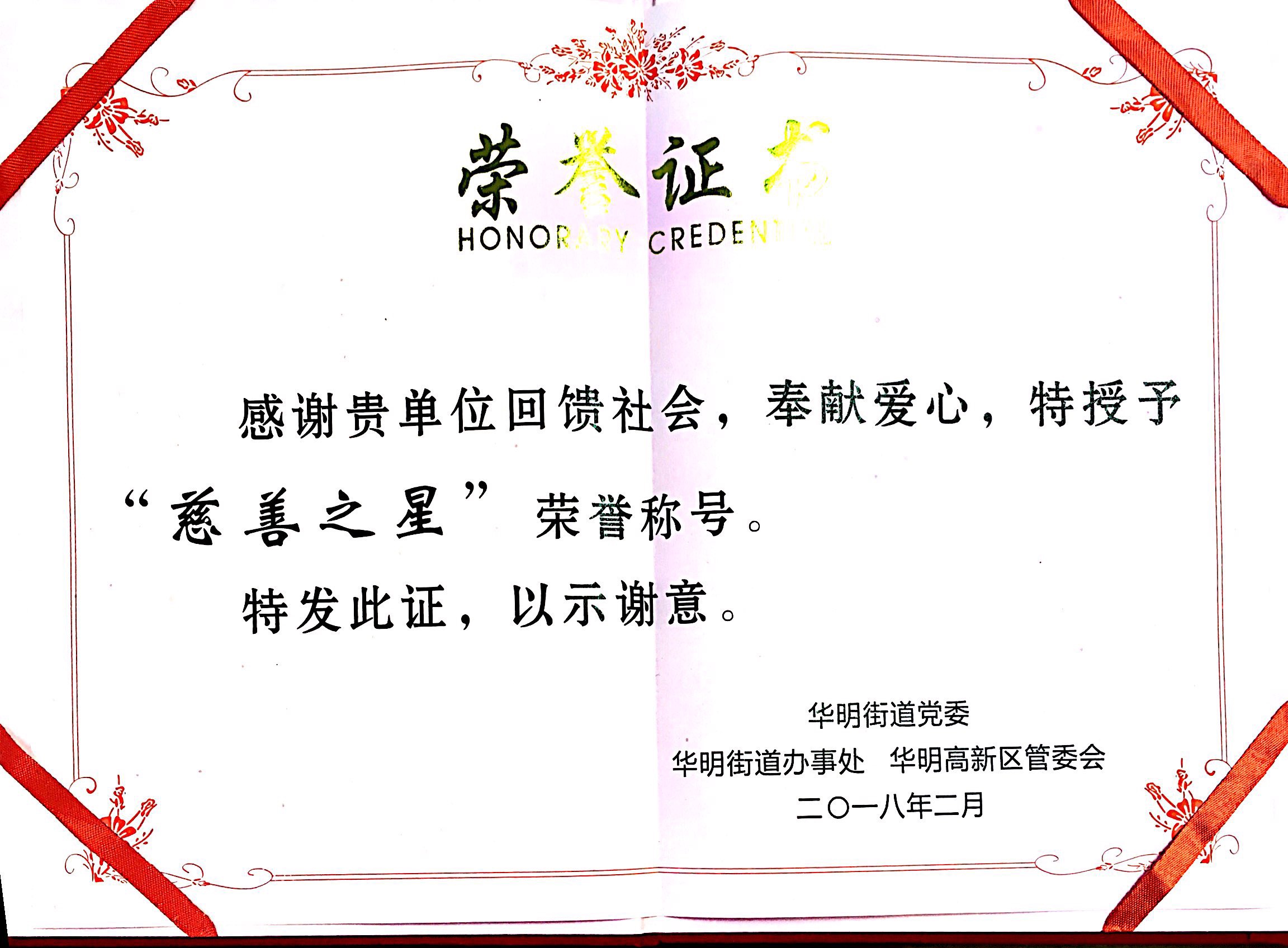 慈善之星榮譽(yù)稱號(hào)