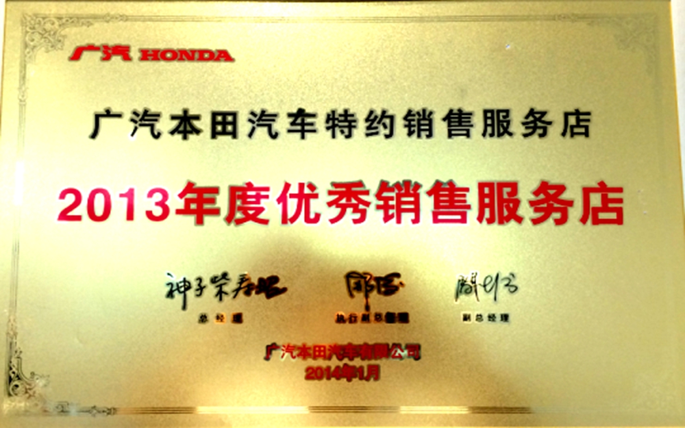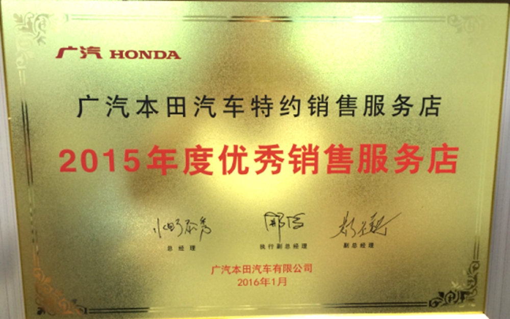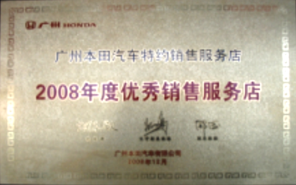 我公司汽車銷售實(shí)行一站式服務(wù)。從選車、購(gòu)車、上牌、保險(xiǎn)到二手車評(píng)估置換一站式完成。我店為天津地區(qū)首家廣汽本田喜悅二手車特約店,天津地區(qū)首家廣汽本田綠色特約店,天津地區(qū)唯一一家授權(quán)維修本田高端品牌“謳歌”的廣汽本田特約店。并于06、07、08連續(xù)三年獲得廣汽本田最高榮譽(yù)“優(yōu)秀服務(wù)店”稱號(hào),成為天津地區(qū)唯一一家連續(xù)3年獲此殊榮的特約店。各項(xiàng)指標(biāo)在全國(guó)600余家廣汽本田特約店中名列前茅。